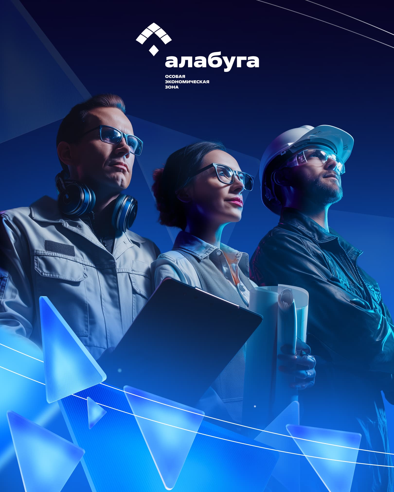 В графике «Алабуги» треугольник — ключевой фирменный элемент, формирующий визуальный язык бренда. Он выступает как самостоятельный символ и одновременно как часть более сложной структуры — синергии.